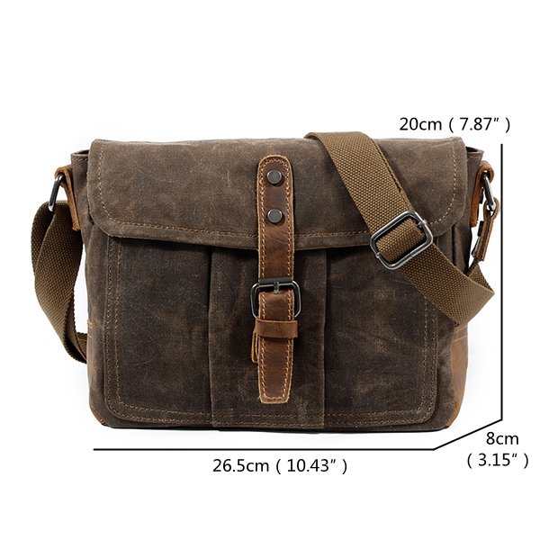 Vintage Canvas Genuine Leather Waterproof Shoulder Bag Messenger Bag Crossbody Bag For Men