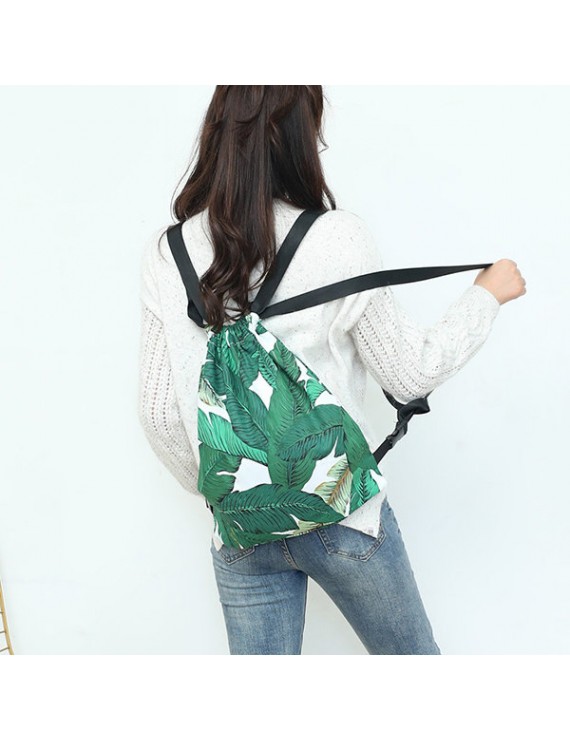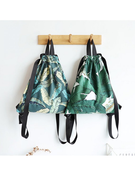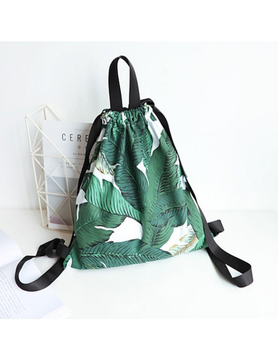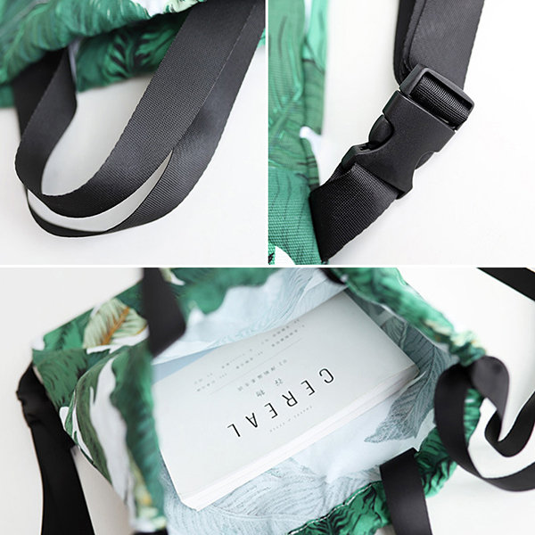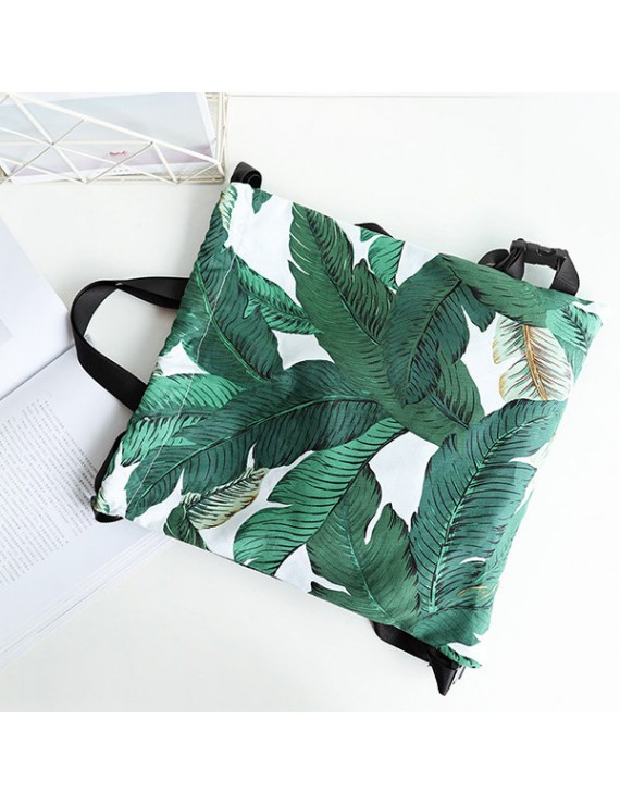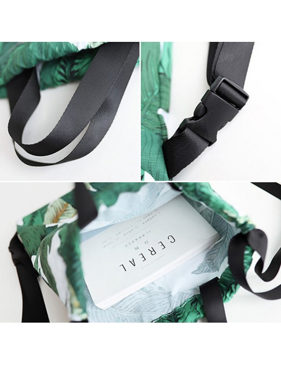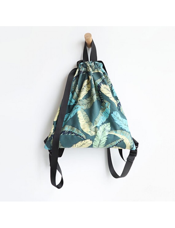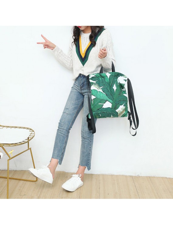 Fresh Print Leaf Canvas Backpack Leisure Handbag