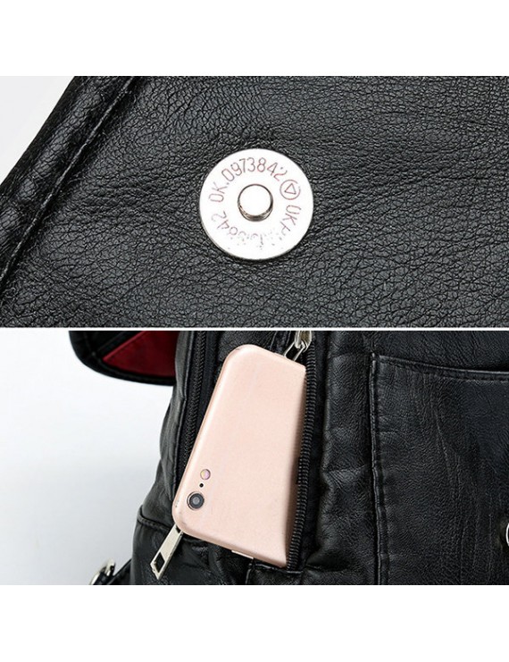PU Leather Backpack Large Capacity Shoulder Bag For Women
