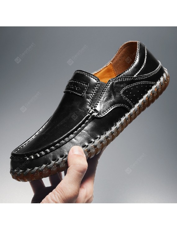 Large Size Men's Casual Leather Shoes Round Toe Non-slip Driving Shoes