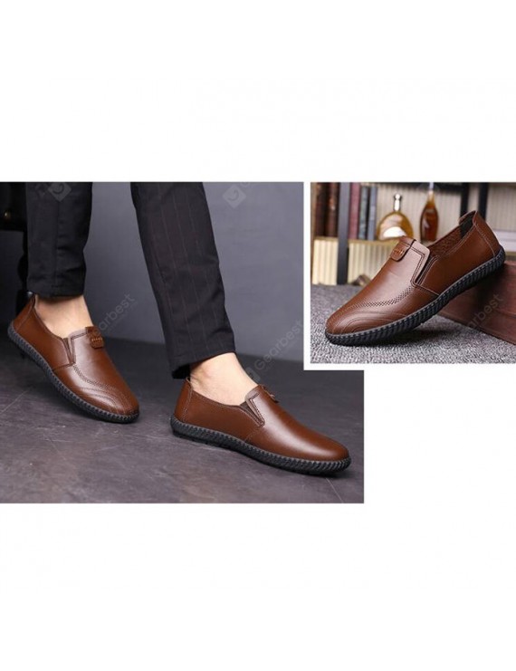 Men PU Leather Casual Footwear Soft Beanie Shoes British Style Lazy Flat Shoes